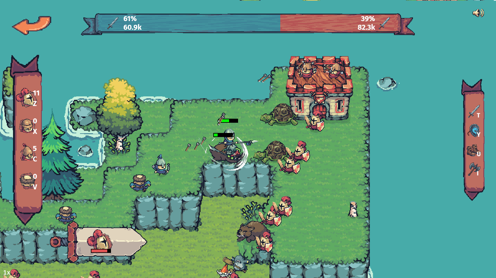 - Use the arrows to select which lane(s) spawning units should take.